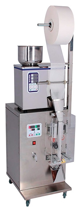 - Весовой дозатор отмеряет заданную на дисплее дозу продукта и сбрасывает ее в пакет сформированный из рулона пленки