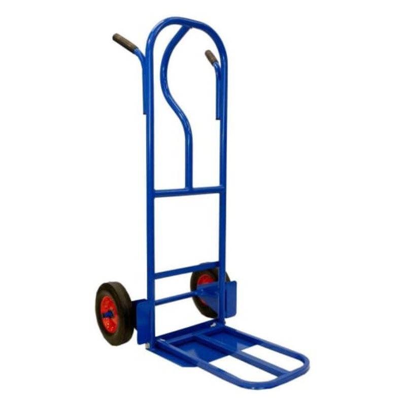 Прочная стальная конструкция Платформа для размещения груза Дополнительная откидная полка Два пневматических колеса из каучука Рукоять с резиновыми накладками