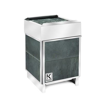 Банные печи Karina серии ELITE предназначены для парилок малого и среднего размера. В модельном ряду представлены устройства мощностью от 3,0 до 18,0 кВт. Печи выпускаются в трех вариантах каменной облицовки - талькохлорит, змеевик и кварцит. Для управления оборудованиям необходимо дополнительно приобрести выносной контроллер.