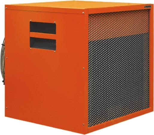Корпус тепловентилятора выполнен из листовой стали, покрытой высококачественным полимерным антикоррозийным покрытием. Малошумный вентилятор осевого типа обеспечивает движение воздуха через прибор. Крыльчатки вентилятороа изготовлены из стали, также защищеной полимерным антикоррозийным слоем.