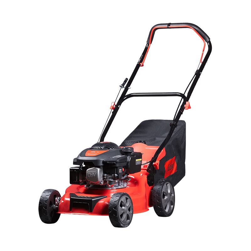 Машина оборудована системой быстрого старта. В качестве привода используется мотор немецкого производства Фубаг мощностью 2,2 кВт. Работает на топливе АИ-92. Имеются три степени регулировки высоты кошения – 36, 52, 72 мм. Конструкция из прочной стали надежно защищает внутренние компоненты.