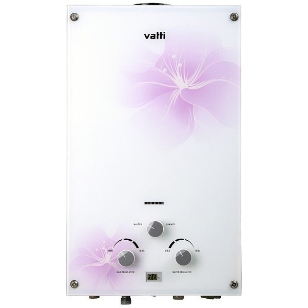 Проточный водонагреватель Vatti (Ватти) LR20-EGE В работает от природного и сжиженного газа, но благодаря электронному розжигу, считается удобным и безопасным в эксплуатации. Оборудование выполнено в современном дизайне, передняя часть корпуса украшена рисунком, на котором изображена сиреневая лилия. Прибор отличается экономностью, ведь запускается автоматически при откручивании крана горячей воды.