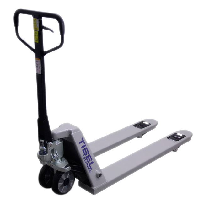 Гидравлическая тележка 2500 кг Tisel T25 оборудована уникальный системой, включающей в себя резервуар с маслом и насос с хромированными поршнями. Имеет защиту от сверхнагрузки. Также есть контроль скорости снижения вил. Колеса изготовлены из полиуретана. Направляющие ролики защищают подъемный механизм от деформации и износа.