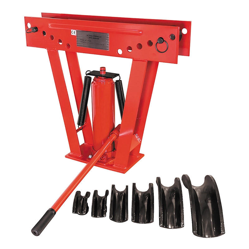 Гидравлический трубогиб Torin с максимальным усилием 12 тонн. Предназначен для гибки и изменения формы стальных труб диаметром 12,7-50,8 мм. Воздействие на изделие производится вручную, не требует подключения к электросети. В комплекте 6 насадок разного размера. Широко применяется при производстве ограждений и всевозможных каркасных конструкций.Станок и гибочные сегменты отличаются повышенной износостойкостью и высоким рабочим ресурсом. Изготовлены из высокопрочной стали и антикоррозийных материалов. Рычаг оснащен прорезиненным наконечником, предотвращающим скольжение при работе.