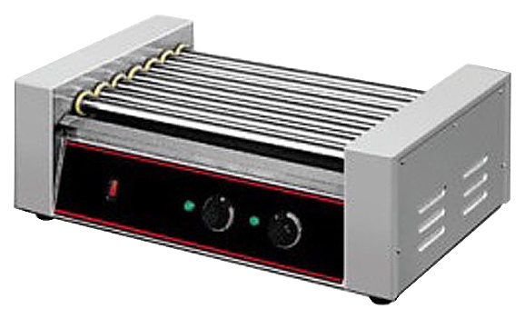 Роликовый гриль EKSI HHD-09B предназначен для обжаривания сосисок, сарделек и колбасок на предприятиях общественного питания и уличной торговли. Постоянное вращение роликов способствует прожариванию продуктов со всех сторон. Модель оснащена терморегулятором и съемным подносом для сбора жира. Корпус и покрытие роликов выполнены из нержавеющей стали.