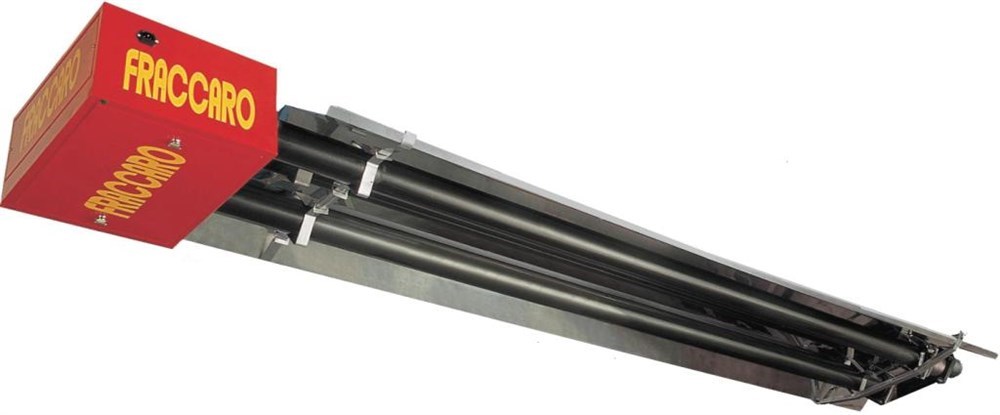 Инфракрасный обогреватель Fraccaro Panrad представляет собой отопительный модуль, который предназначен для работы в помещениях с большими теплопотерями и для установки на больших высотах, от 4 до 20 м. Обогреватель состоит из блока-горелки из остеклованной стали со стабилизатором пламени, отражателем из полированного алюминия с высокой степенью отражения, теплоотдающего элемента различной длины, в зависимости от модели медно-никелевого сплава стали с высоким коэффициентом теплоотдачи, в комплекте с компенсатором на растяжение из нержавеющей стали, оголовки труб с прокладками из керамического волокна, кронштейны крепления из оцинкованной стали. Наибольшая эффективность обогрева достигается благодаря специальному элементу, расположенному над нагретой трубой, который точно направляет тепловой поток в указанную зону, сверху вниз.