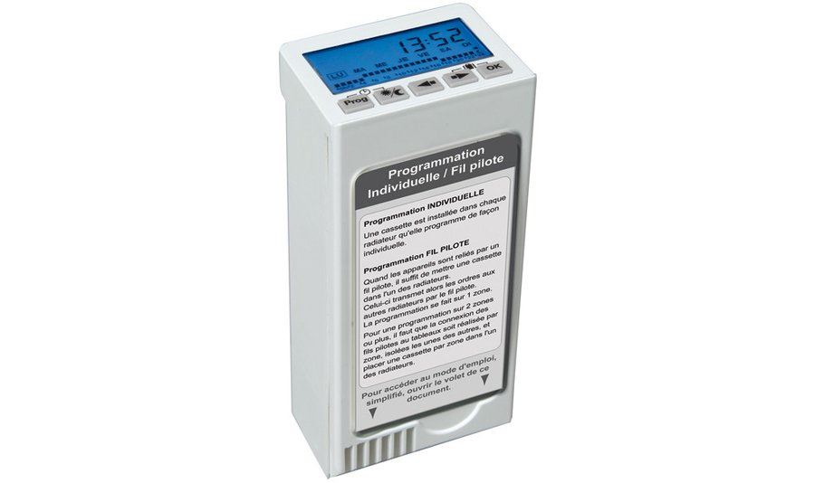 Noirot (Нойрот) CNX-3 2000 представляет собой устройство управление, которое встраивается в электрические конвекторы. Программатор может управлять одновременно двадцать обогревателями, настраивая их работу в соответствии с предпочтениями пользователей. Кассета оборудована дисплеем, на котором отображается режим работы, а также время и дата. Устройство также имеет семь интегрированных рабочих программ, а также одну для пользовательской настройки.