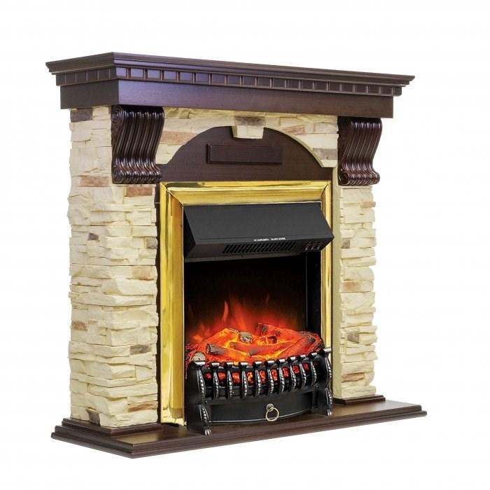 Комплект электрокаминов с искусственным камнем Royal Flame Dublin арочный сланец с очагом Fobos (Темный дуб)