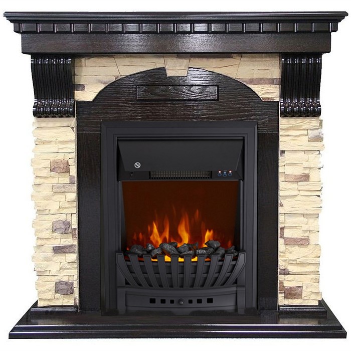 Royal Flame (Роял Флейм) Dublin арочный сланец венге с очагом Aspen Black представляет собой каминокомплект, представленные сочетанием классического очага и портала, в качестве материалов изготовления которого использован натуральный древесный шпон и камень. Темные деревянные компоненты выгодно подчеркивают мягко-бежевый камень, стилизованный под природный сланец.