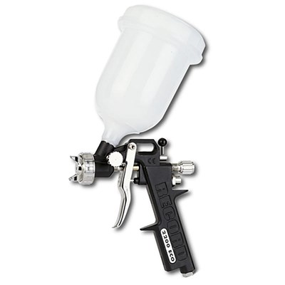 Мощный пневматический привод Прочный алюминиевый сплав Верхнее расположение резервуара Регулировка интенсивности распыления