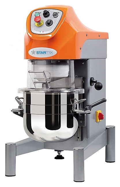 Настольный планетарный миксер Starmix PL20BNVF предназначен для взбивания кондитерских масс: кремов, суфле, муссов, а также бисквитного, дрожжевого, песочного, блинного, заварного теста на предприятиях общественного питания и торговли, в пекарнях и кондитерских. Модель оснащена электромеханической панелью управления.Корпус выполнен из окрашенного металла, защитный кожух - из пластика.