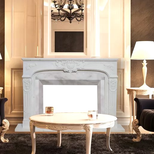 Каминная облицовка DeMarco (Де Марко) ADONIS изготовлена из белого мрамора и украшена резными элементами, боковые колонны и надтопочная часть оформлены декоративной резьбой ручной работы. Устройство славится не только красотой, но и высоким качеством исполнения, и будет благородно смотреться в интерьере гостиной вашего дома.