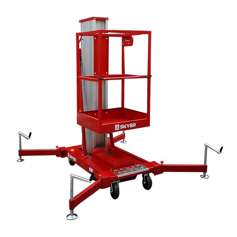 Подъёмник SKYER GTWY9-100 предназначен для поднятия сотрудников с инструментами на высоту девять метров. Подходит для ремонтных, монтажных и строительных работ. Отличается небольшими размерами и массой. Установлена особая скоба для сцепки страховочного троса. Мачта выполнена из легкого алюминиевого сплава.