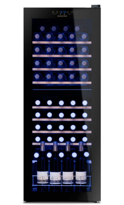 Винный холодильник модели Dunavox (Дунавокс) DXFH-54.150 вместимостью 54 бутылки. Он может быть как отдельностоящим, так и вмонтированным под столешницей. Имеет 10 полок из массива бука и металлическую демонстрационную решетку. Холодильник имеет две зоны охлаждения, что позволяет хранить разные вина.