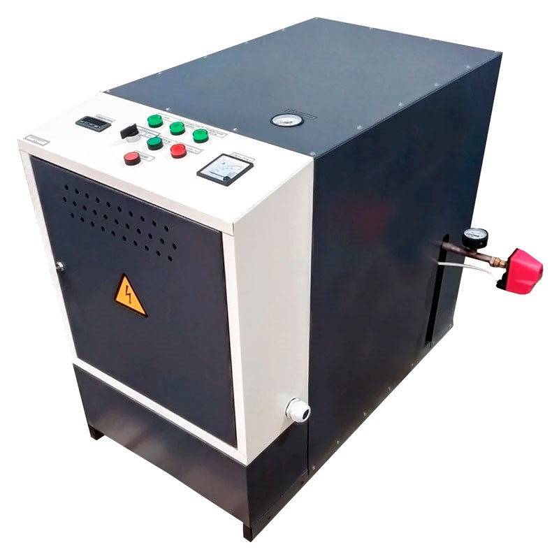 Агрегат работает от трехфазной электросети 380 В. Нагрев воды до состояния пара осуществляет тэновый блок. Котлы изготовлены из качественной нержавеющей стали. Устройство характеризуется надежностью и простотой в обслуживании. Монтаж аппарата не занимает много времени. Данная модель соответствует стандартам безопасности и качества.