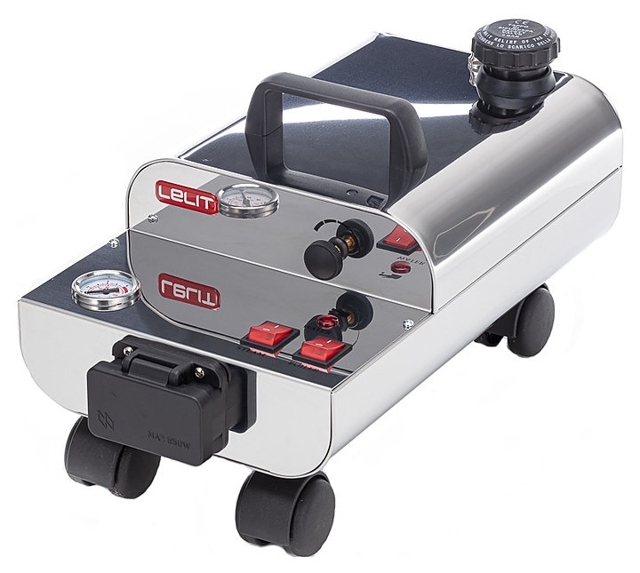 ПарогенераторLelit PG-024Nиспользуется впрачечных, отелях, гостевых домах и офисах для влажно-тепловой обработкибелья и одежды. Модель оснащенаманометром, колесами, индикаторами завершения воды в бойлере и готовности пара.Подошва утюга выполнена из алюминиевого сплава, бойлер - из нержавеющей стали.