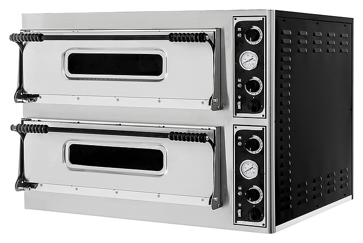 Печь для пиццы Prismafood BASIC 66используется на предприятиях общественного питания и торговли для выпечки пиццы и других хлебобулочных изделий. Модель оснащена 2 рабочими камерами с откидными дверьми, длинными горизонтальными рукоятками с рельефной поверхностью и электромеханическими панелями управления. Корпус выполнен из листовой стали с антикоррозийным покрытием черного цвета, фронтальная облицовка и двери из листовой нержавеющей стали, трубчатые нагревательные элементы (ТЭНы) из стали, поды из огнеупорного камня, изоляция из минеральной ваты.