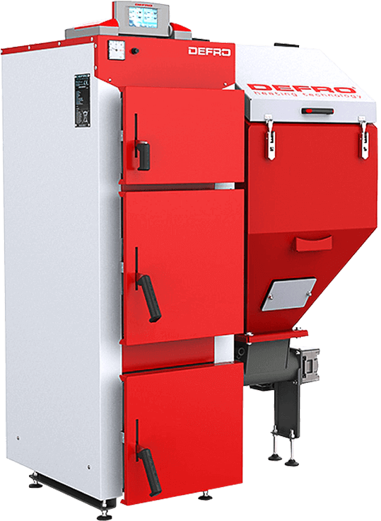 Автоматический котелDEFRO KOMFORT EKO LUX 48 с топливным бункером для угля типа «эко-горошек» 5-31 мм и – опция - пеллет. Котел высшего 5 класса экологичности и энергоэффективности PN-EN 303-5:2012. Главные особенности: до 5-7 дней работы на одной загрузке топлива и высокий КПД 90,5-90,7 %.Продвинутый электронный контроллер K1P v4 с цветной сенсорной панелью следит за работой котла, просчитывает оптимальный режим подачи воздуха и топлива, отвечает за безопасность и управляет 4 насосами. Опционально можно подключить интернет-модуль для управления котлом со смартфона.