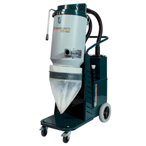 Промышленный пылесос Schwamborn STS 400 предназначен для сбора гипсовой, бетонной, шлифовальной пыли и других частиц. Оборудован фильтром класса HEPA 14 (очистка осуществляется вручную). Мусор собирается в полимерный мешок Longbag. Диаметр шланга составляет 50 мм.