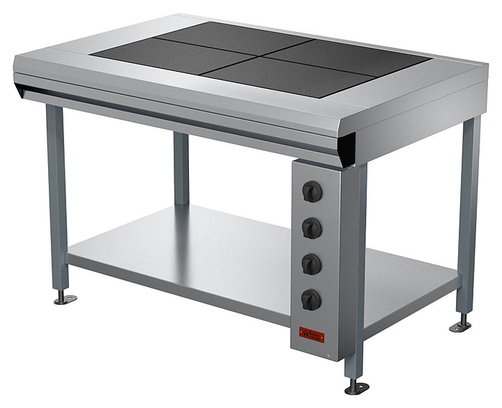 Электрическая плита Проммаш ПЭ-0,48С используется на предприятиях общественного питания и торговли для приготовления первых, вторых и третьих блюд в наплитной посуде, а также для жарки полуфабрикатов из мяса, рыбы, овощей. Модель оснащена инвентарной полкой. Каркас изготовлен из черного металла с полимерным покрытием, рабочая поверхность - из нержавеющей стали.
