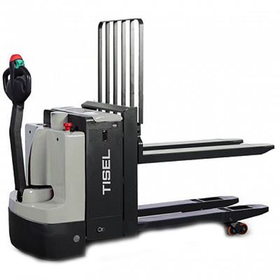 Самоходная электрическая тележка для грузов TISEL ET20I с двойными вилами длиной 1150 мм. Предназначена для подъема и перевозки нескольких паллет и поддонов общим весом до 2000 кг. Высота поднятия нижних вил - 120 мм, верхних - 550 мм. Эксплуатируется от аккумулятора 24 В емкостью 210 А/ч.