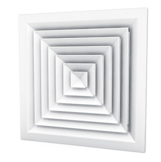 Прямоугольный потолочный диффузор четырехстороннего распределения воздуха служит устройством, которое направляет и, при необходимости, регулирует поток приточного воздуха в жилых и офисных помещениях. Возможна комплектация клапаном расхода воздуха.