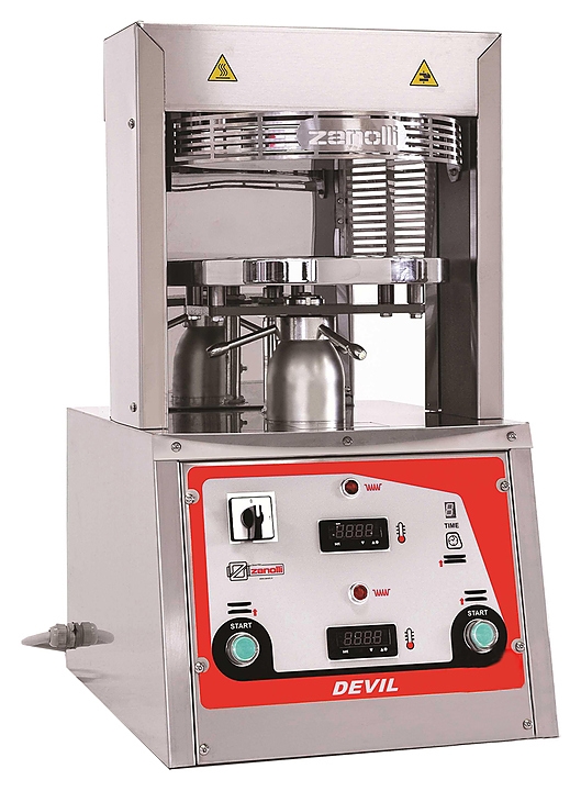 Пресс Zanolli Devil 33 используется на предприятиях общественного питания и торговли для получения круглой тестовой основы (краста). Модель оснащена 2 нагревающимися поверхностями, обеспечивающими пропекание полученных заготовок, цифровой панелью упралвения с независимыми регуляторами температуры рабочих поверхностей и таймером, и 4 резиновыми ножками.Корпус выполнен из нержавеющей стали.