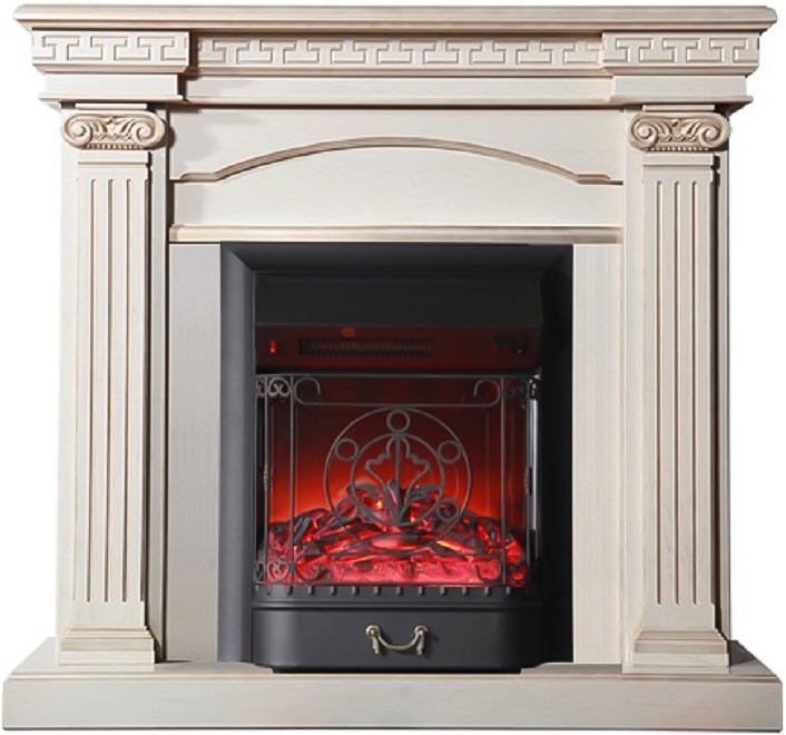 Пристенный электрокамин InterFlame Афина (бежевый с золотой патиной) с очагом Fobos /Majestic