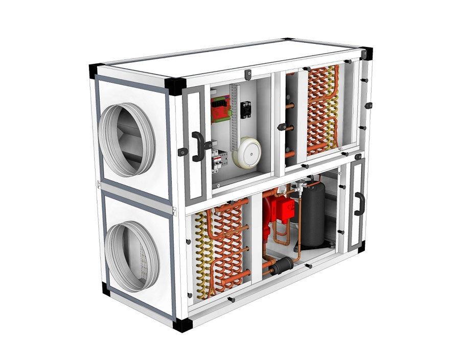 - Охлаждение приточного воздуха с помощью встроенного реверсивного теплового насоса