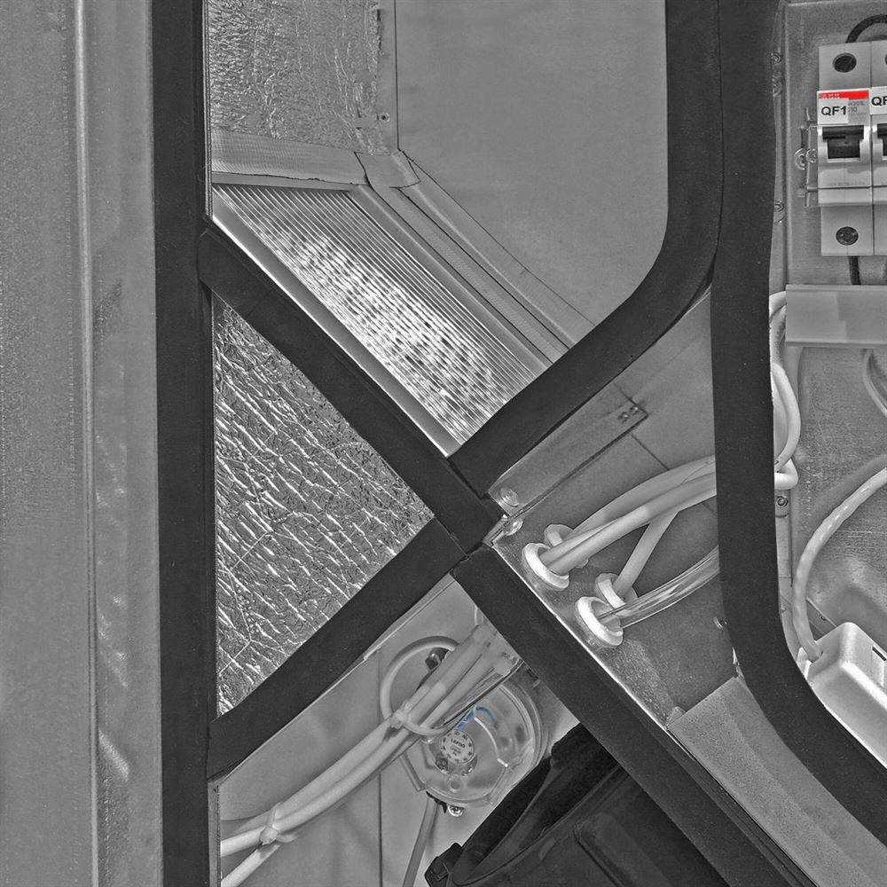 - Стенки установки заполнены теплошумоизоляцией толщиной 50 мм на основе негорючей минеральной ваты.