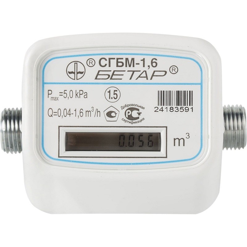 Счетчик газа Бетар СГБМ-1,6 тройник с накидной гайкой