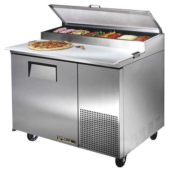Стол для пиццы True TPP-44 используется на предприятиях общественного питания и торговли для раскатки теста и обработки ингредиентов, используемых для приготовления пиццы, салатов и других блюд, а также для охлаждения и кратковременного хранения скоропортящихся продуктов и напитков. Модель совмещает в себе рабочую поверхность и охлаждаемый объем, что значительно упрощает работу повара, так как все необходимые компоненты всегда находятся под рукой. Передняя, верхняя и боковые наружные части выполнены из нержавеющей стали, задняя наружная часть - из подходящего по цвету алюминия, дно стола - из нержавеющей стали, остальные внутренние части - из белого алюминия, одобренного NSF.