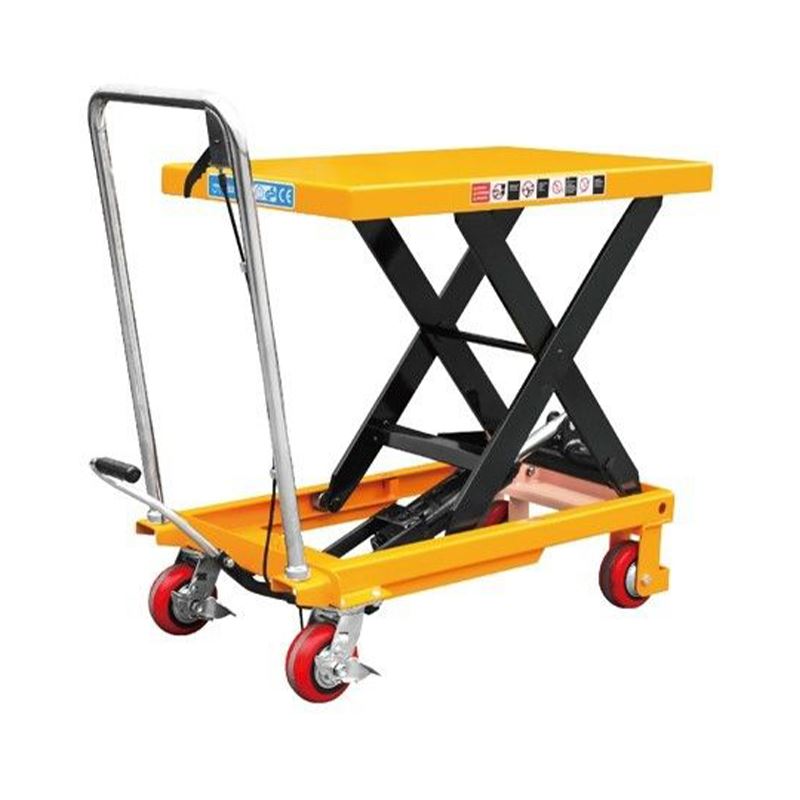 Аппарат функционирует от гидравлического привода. Управляется рычагом. Оборудован четырьмя износостойкими колесами из полиуретана. Не оставляет следов на напольных покрытиях. Корпус выполнен из высокопрочной стали. Устойчив к переворачиванию. Максимальная грузоподъемность составляет 1000 кг.