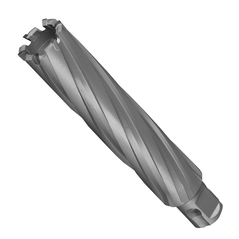 Bohre диаметром 59 мм и длиной 75 мм — кольцевая фреза из твердого сплава. Подходит для резки прочных сплавов и нержавеющей стали. Модель оборудована напаянными пластинами, которые рекомендуется охлаждать специальной жидкостью. Обладает хвостовиком Велдон, благодаря чему используется с большим количеством станков для сверления металла. Инструмент сделан из TCT-стали, которая обеспечивает устойчивость к нагреву.