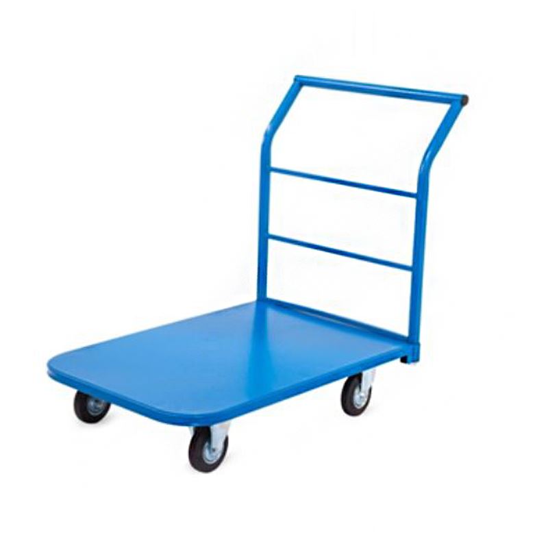 Вместительная грузовая платформа Прочный металлический каркас Четыре резиновых колеса Удобная рукоять управления