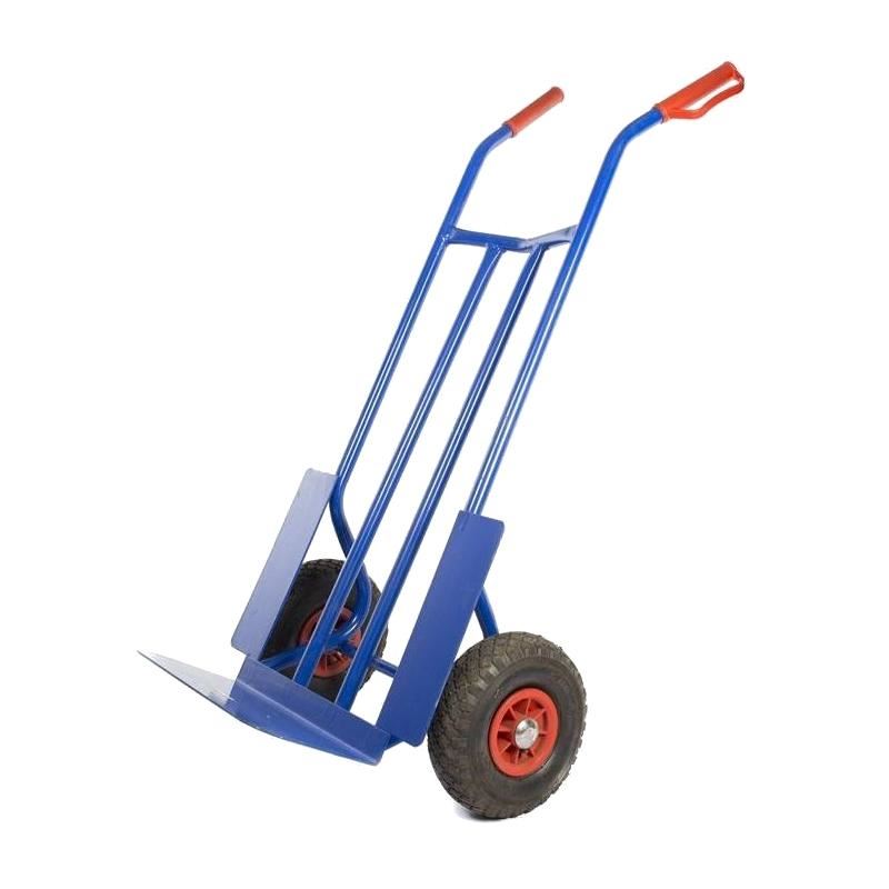 Тележка ручная двухколесная TOR HT 300 имеет грузоподъемность 300 кг и диаметр колес 250 мм. Устройство значительно облегчает перемещение тяжелых грузов небольшого объема. Находит применение на складах, а также на торговых, производственных и других объектах. Тележка состоит имеет прочную металлическую раму, которая защищена от образования коррозии. Обладает платформой 200х350 мм. Оснащается резиновыми пневматическими колесами, что позволяет перемещаться по неровному полу.