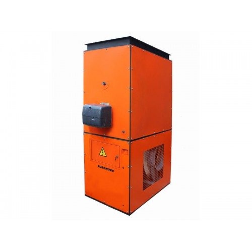 Серия H стационарных воздухонагревателей марки Euronord с модельным рядом мощностью от 50 до 764 кВт предназначена для отопления помещений до 7500 кв.м. Данные теплогенераторы используют в качестве топлива газ, дизель, отработанное/техническое/растительное масло - в зависимости от типа наддувной горелки, которой оснащены. Эта серия оборудована радиальным вентилятором, предназначена для присоединения к системам воздуховодов. Воздух, забираемый вентилятором через решетки в нижней части устройства и подогретый, подается по воздуховодам в помещение.
