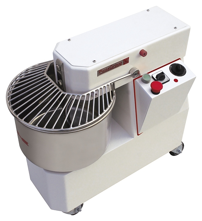 Спиральный тестомес Pizza Group IF22 используется на предприятиях пищевой промышленности, общественного питания и торговли для замеса тестадля приготовления пиццы, хлеба и тонких лепешек.Модель оснащена наклонной панелью управления, таймером, защитной решеткой над дежой и колесами.Спираль, решетка, дежа и отсекатель выполненыиз высококачественной нержавеющей стали.