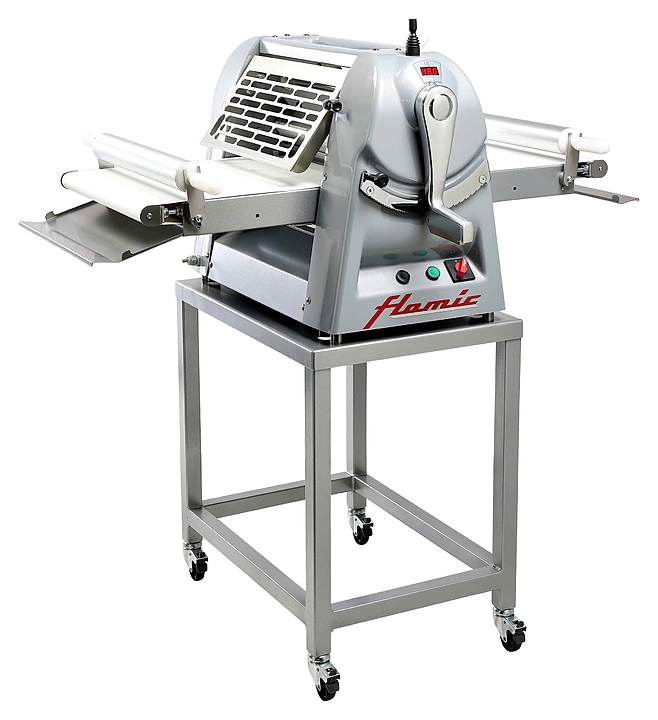 Машина Flamic SF450D-700 предназначена для раскатки бездрожжевого и дрожжевого слоеного теста, а также теста для приготовления пельменей, лапши и др. на предприятиях пищевой промышленности и общественного питания, в пекарнях и кондитерских. Модель оснащена электромеханической панелью управления с дисплеем, на котором отображается толщина раскатки. Конструкция выполнена из окрашенной стали.