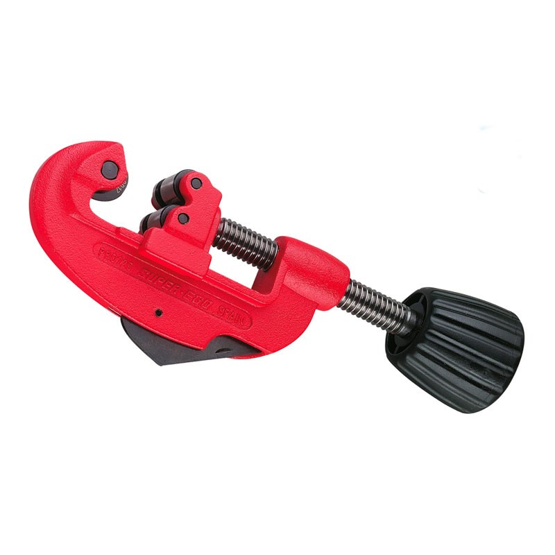 Труборез SUPER-EGO PRO 725 обладает высокопрочной конструкцией, изготовленной из специального сплава. Есть откидное устройство для снятия грата. Инструмент применятся для нарезки пластиковых, нержавеющих, медных и алюминиевых труб диаметром 3-30 мм. Оснащается дополнительным режущим ножом.