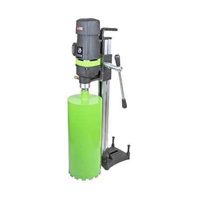 Технические характеристики: система оборудована стойкой, благодаря которой допустима эксплуатация под углом до 90 градусов. Оснащена электрическим двигателем мощностью 2,5 кВт. Работает от сети напряжением 220 В. Максимальный диаметр коронки составляет 20 см.