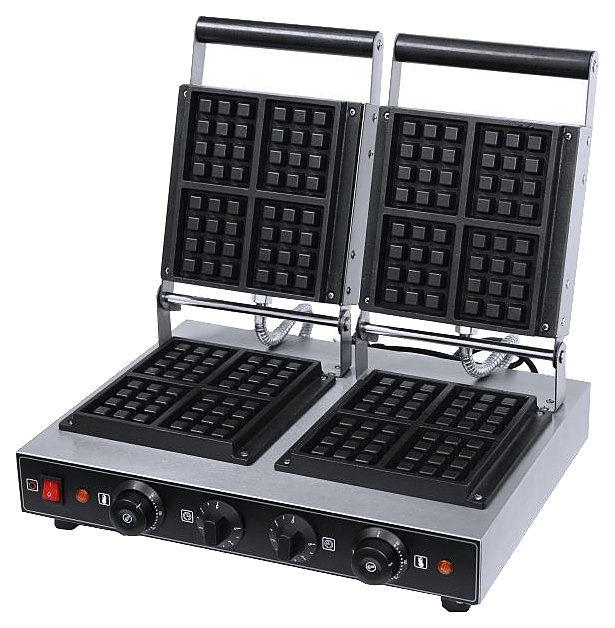 Вафельница Enigma IWB-2S используется на предприятиях общественного питания и торговли для выпекания квадратных бельгийских вафель. Модель оснащена таймером до 5 минут и 4 ножками. Рабочие поверхности выполнены из чугуна с тефлоновым покрытием.