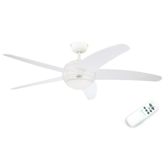 Westinghouse (Вестингауз) Bendan White вентилятор люстра полностью белого цвета. Вентилятор поддерживает воздух в прохладном состоянии, обеспечивая комфортное пребывание в жилом помещении благодаря равномерному распределению на заданной площади. Пульт управления позволяет регулировать функции скорости вентилятора и освещения удаленно.