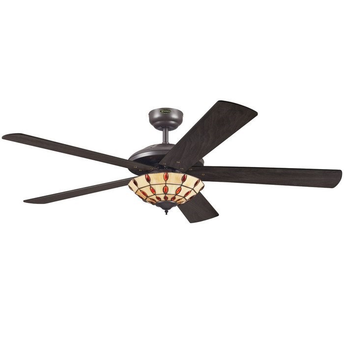 Westinghouse (Вестингауз) Comet Tiffany вентилятор люстра выполняет две задачи это циркулирование воздуха и освещения помещения. В дизайне вентилятора присутствуют восточные мотивы. Использование МДФ разного цвета позволяет добавлять новый элемент в общий дизайн агрегата. Каждый из шнуров регулирует вентилятор и люстру независимо один от другого.