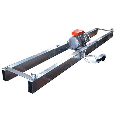 Виброрейка раздвижная двойная с приводом от сети 380 В представляет собой простую и надёжную конструкцию. Состоит из двух балок, передвигающихся по направляющим, и двигателя мощностью 0,25 кВт, производящего вибрацию. Эксплуатируется при бытовом и производственном строительстве для выравнивания и уплотнения бетонной смеси на глубине до 200 мм.