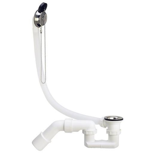 Дополнительная информация | Слив-перелив для станДартных ванн с цепочкой и пробкой, с сифоном, 40/50, пластик хром |
