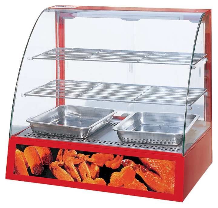 Тепловая витрина Enigma IW-2P предназначена для демонстрации и подогрева пиццы, булочек, тортов, пирогов и различных закусок на предприятиях общественного питания и торговли. Пароувлажение, осуществляемое за счет воды, позволяет сохранить вкус и мягкость продуктов.Стеклянные боковые поверхности и переднее гнутое стекло улучшают обзор товара. Корпус выполнен из металла окрашенного в красный цвет, задние раздвижные двери - из стекла.