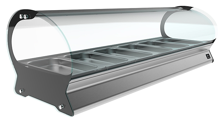 Тепловая витрина КоборSE-4Hсерии Space предназначена для демонстрации, подогрева и поддержания в теплом состоянии различных блюд на предприятиях общественного питания и торговли. Витрина имеет округлые формы и неповторимый дизайн. Модель оснащена светодиоднойподсветкой.