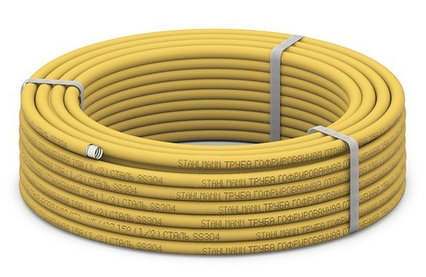 Stahlmann (Штальманн) Труба SS304 15A, отожженная в оболочке желтая, 30м предназначена для использования в газовых установках. Гофрированная модель трубы применяется в качестве трубопроводов во внутренних газораспределительных системах или для подключения газопотребляющих приборов.