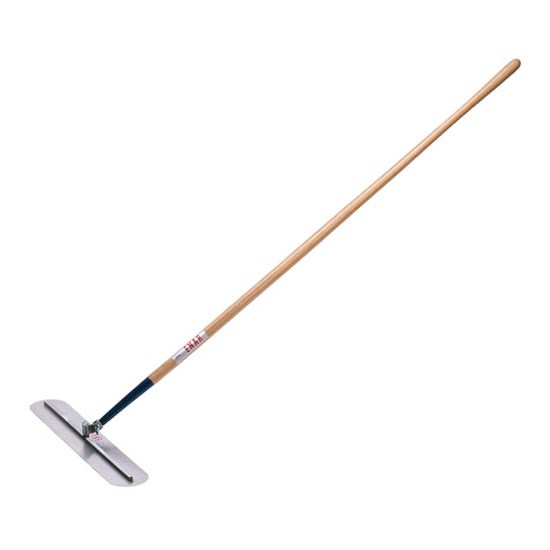 Ручная затирка, выполненная из углеродистой высокопрочной стали. Обладает легкой и надежной конструкцией. Характеризуется удобством и простотой в использовании, не требует специального обслуживания. Применяется для разглаживания поверхности бетона после обработки электрической или бензиновой виброрейкой. Имеет профиль с закругленными краями. Длинная рукоятка существенно упрощает работу на больших площадях.